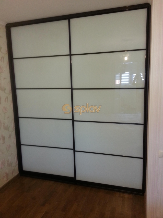 • Фасад шкафа купе: крашенное стекло RAL 9003. Цвет раздвижной системы «Венге глянец».