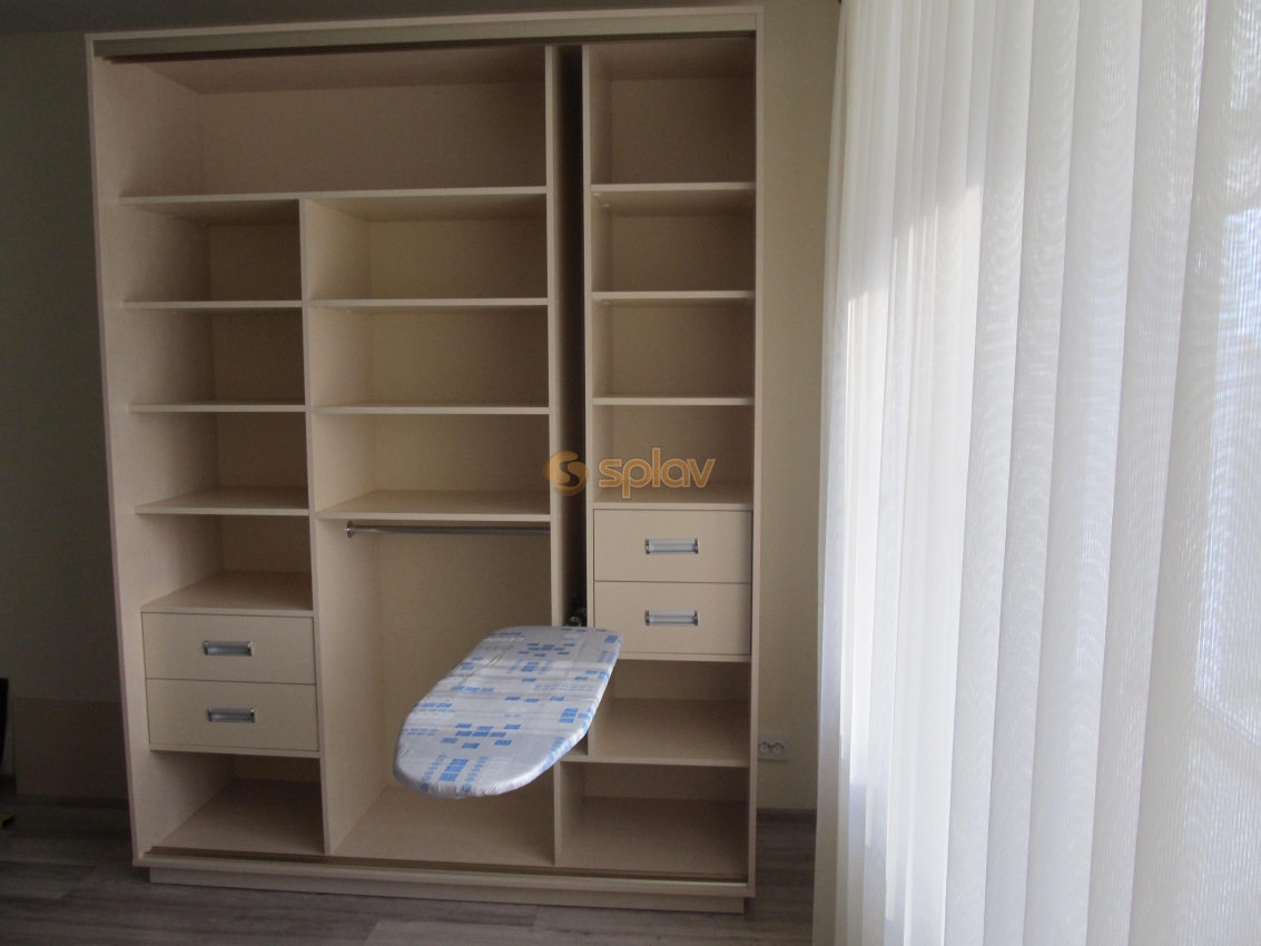 • Технические особенности: трехдверный, отдельно стоящий шкаф купе с встроенной гладильной доской.