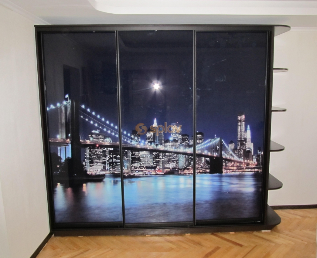 • Фасад шкафа купе: Фотопечать. Цвет раздвижной системы «Бронза темная».